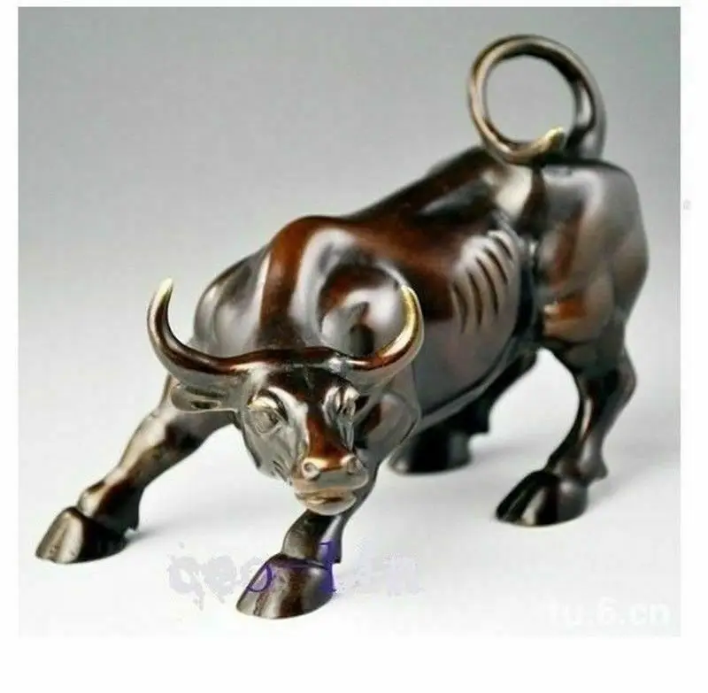Collection Chinese Brass Carved Animal Zodiac Cattle Hot Big Wall Street Brass Fierce Bull OX Statu