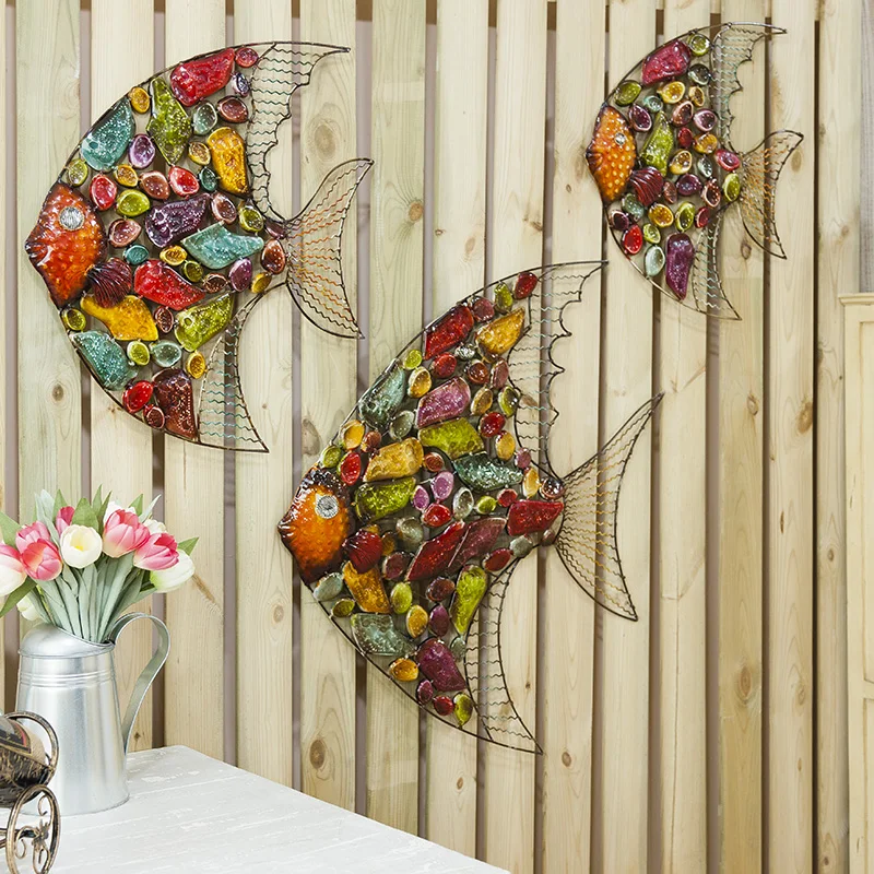 European Style Living Room Hanging Wall Decoration Ornaments Mural Creative Color Fish Iron Paintin