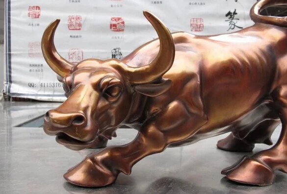 Best Seller USPS to USA S3217 11 Chinese Royal Red Bronze Copper made Lucky Wall Street wealth Bull OX Statue B
