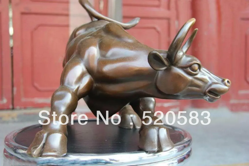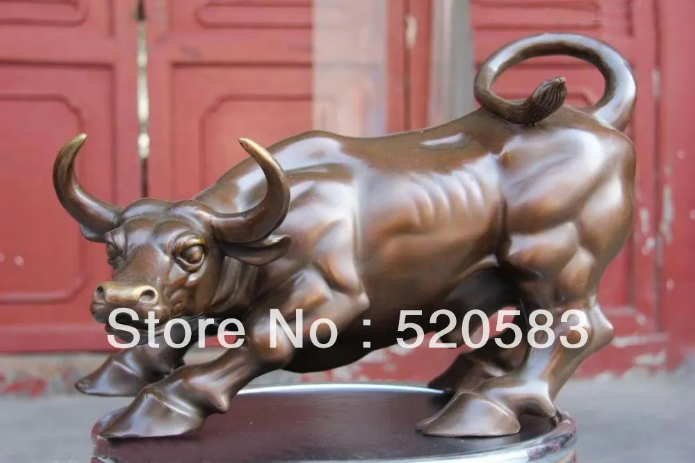 Hot Sale 13 Chinese pure Bronze Copper carved Wall Street Fierce Bull OX fengshui Statue