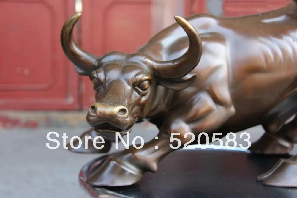 Best Seller 13 Chinese pure Bronze Copper carved Wall Street Fierce Bull OX fengshui Statue