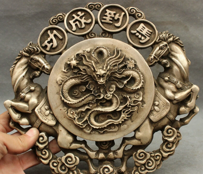 song voge gem S3205 9" Chinese Cultue Silver Dragon Horse Meaning Success Statue Lucky Wall Hanging