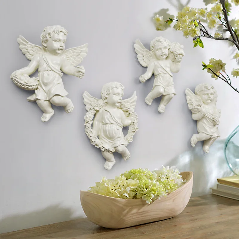BEST QUALITY Cute Cupid Angel Statue 3D Wall Background Mural Sculpture Colophony Crafts Home Wall Hanging Decor