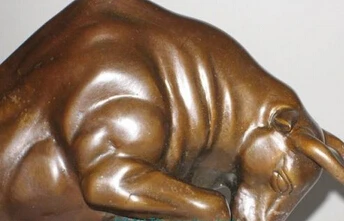 Best 006790 Medium size Bronze coffee Wall Street Fierce Bull OX Figure Statue 9"Long